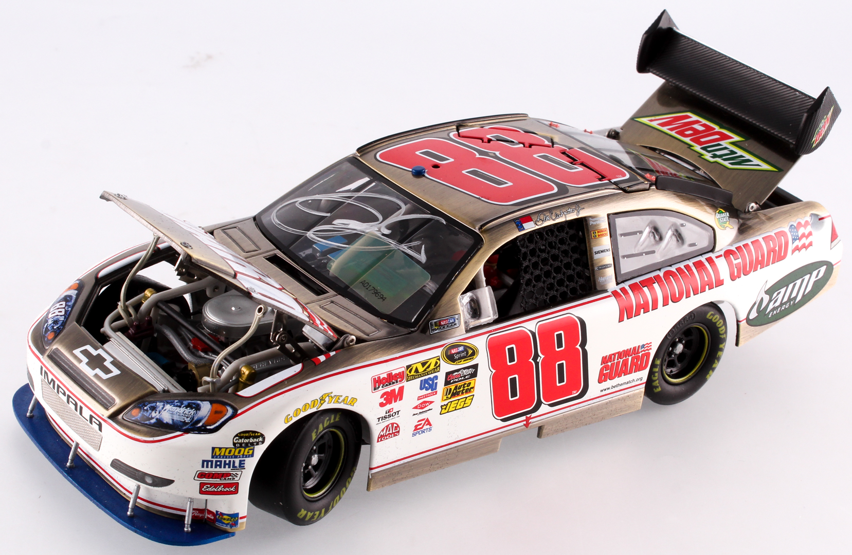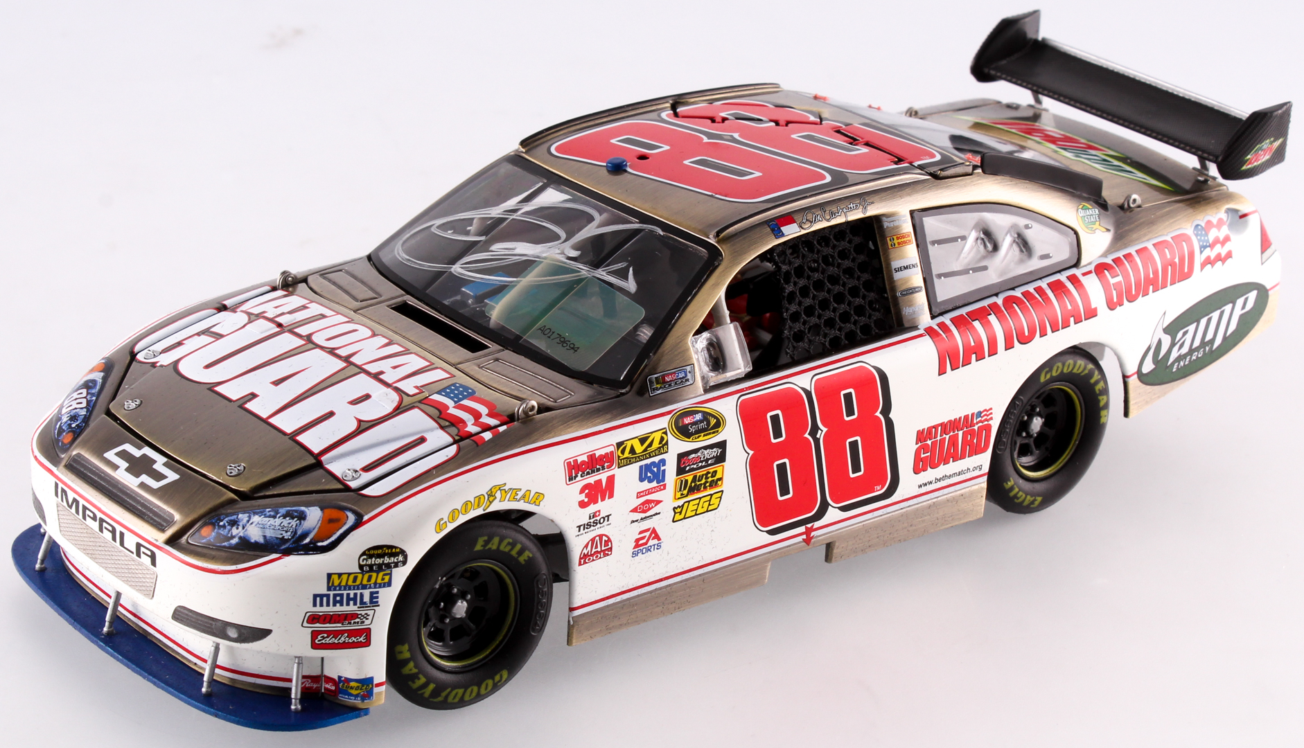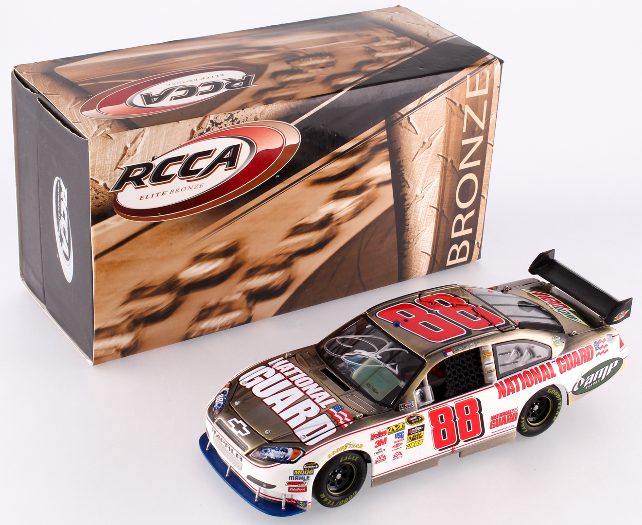 2010 Bronze Elite Chevrolet Impala 1:24 Scale Die-Cast Car has been hand signed in silver paint pen by Dale Earnhardt Jr. Limited edition #36/36. Car comes in box as shown.