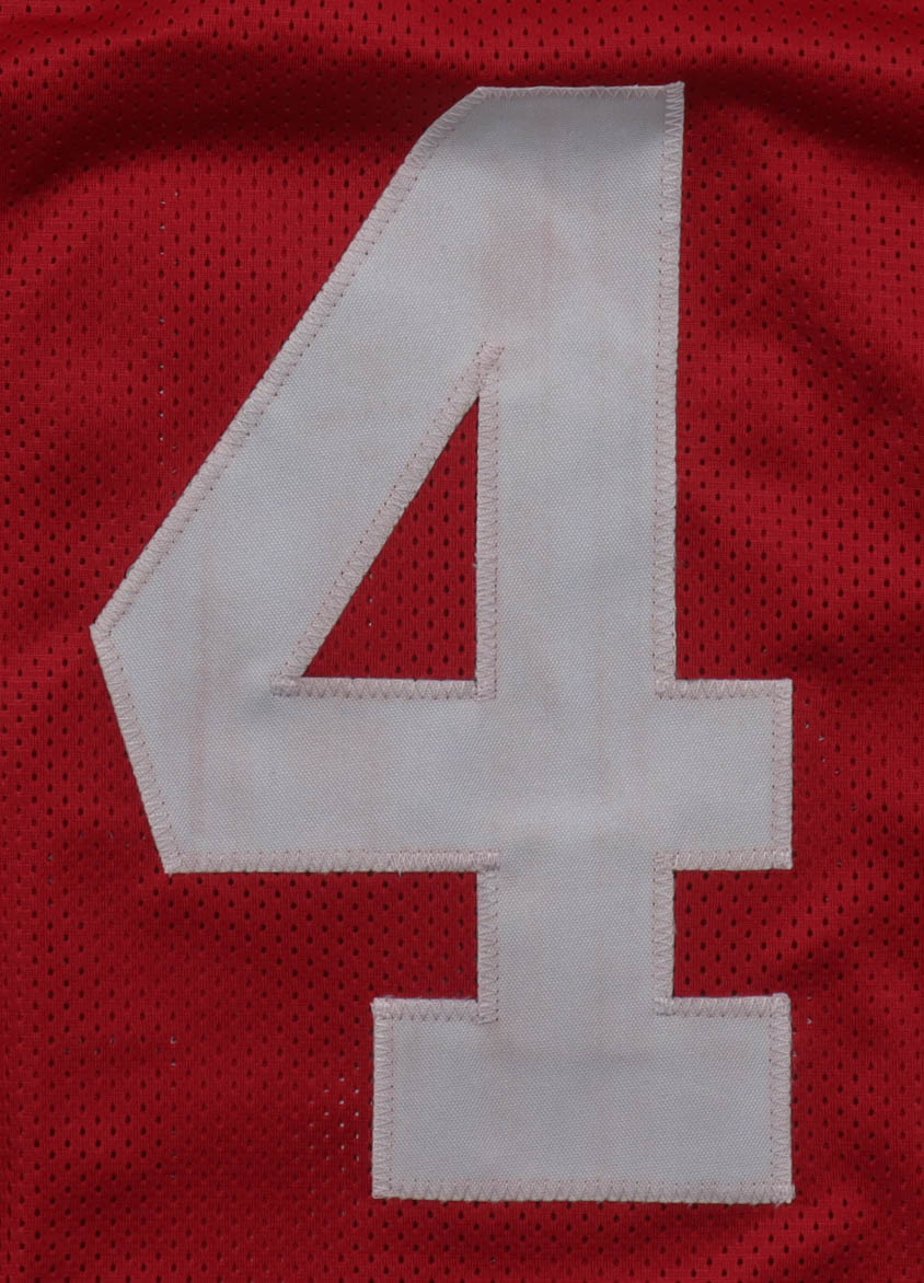Custom jersey with everything sewn on, size XL. Hand-signed by Brian Robinson Jr. Please note, the glue is visible through the front number.