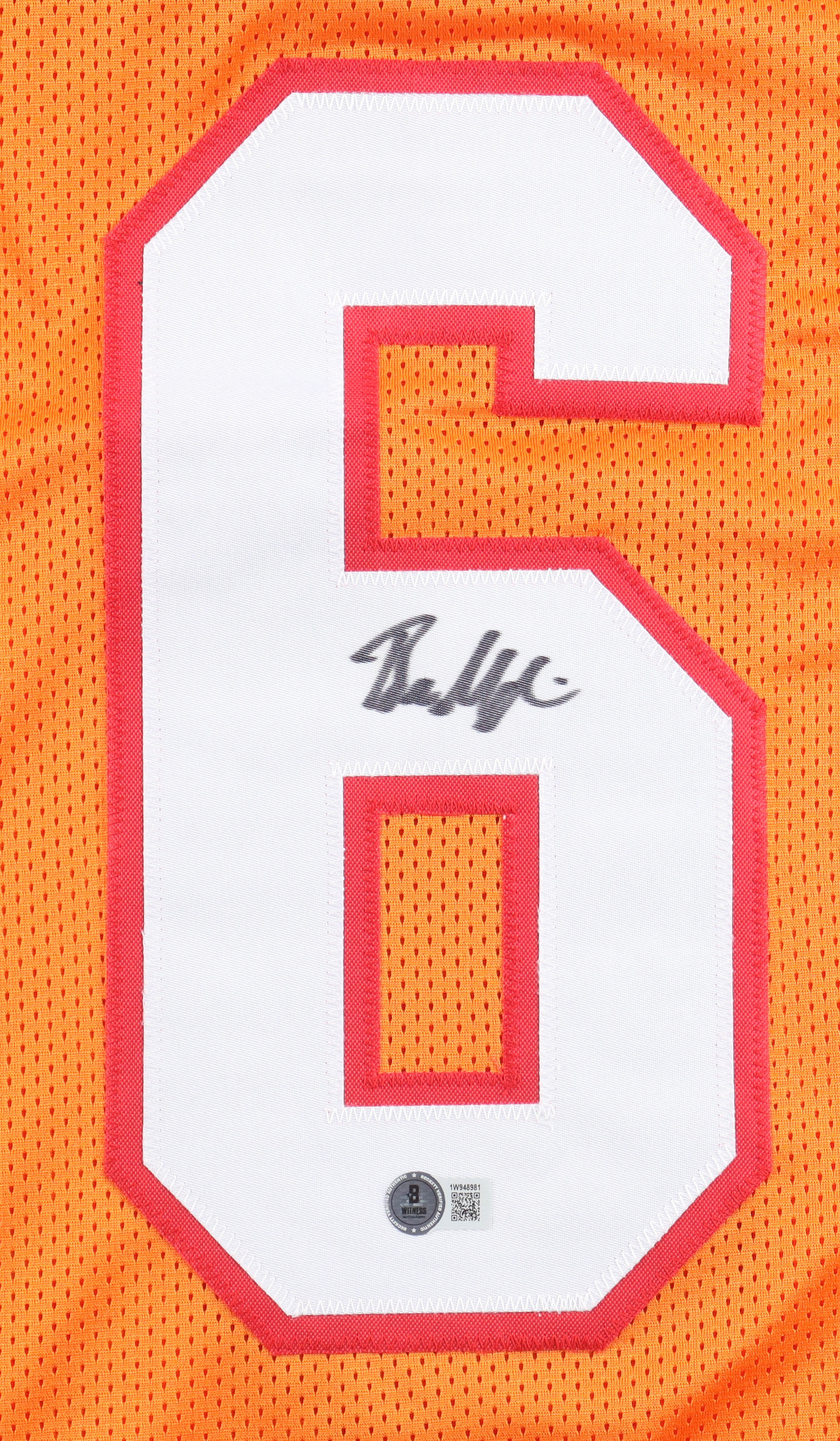 Custom jersey with everything sewn on, size XL. Hand-signed by Baker Mayfield.