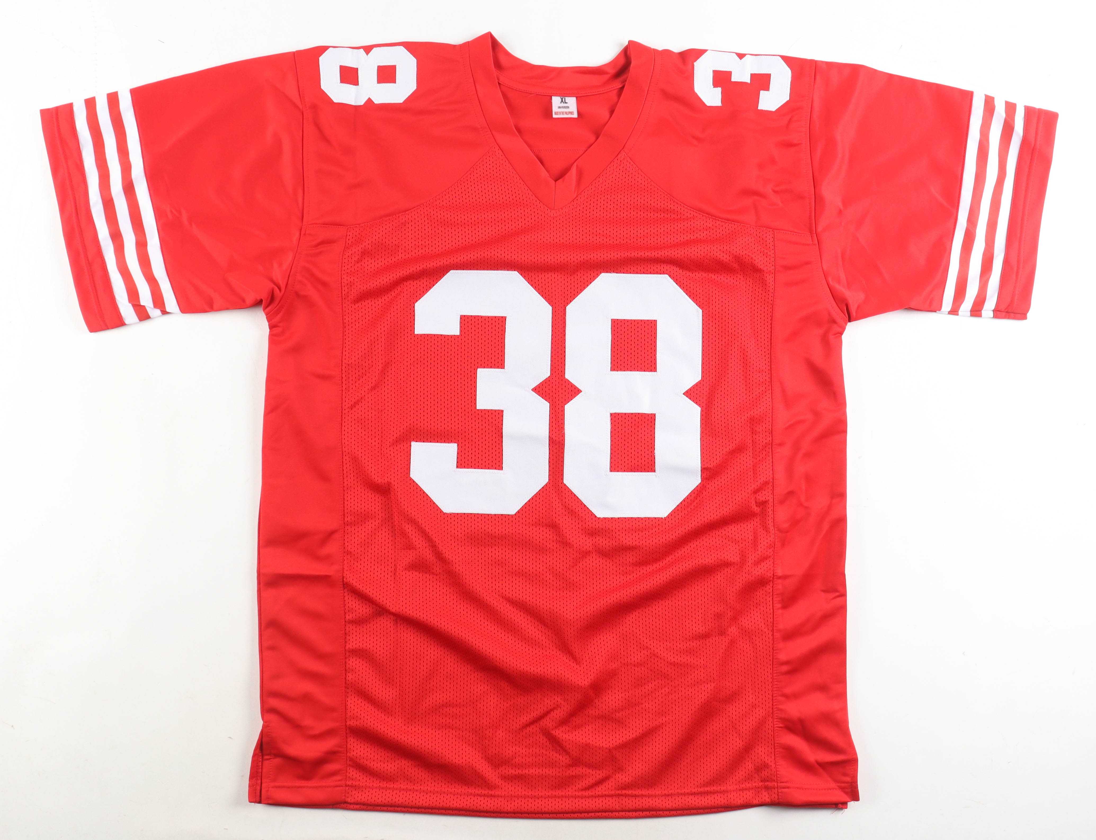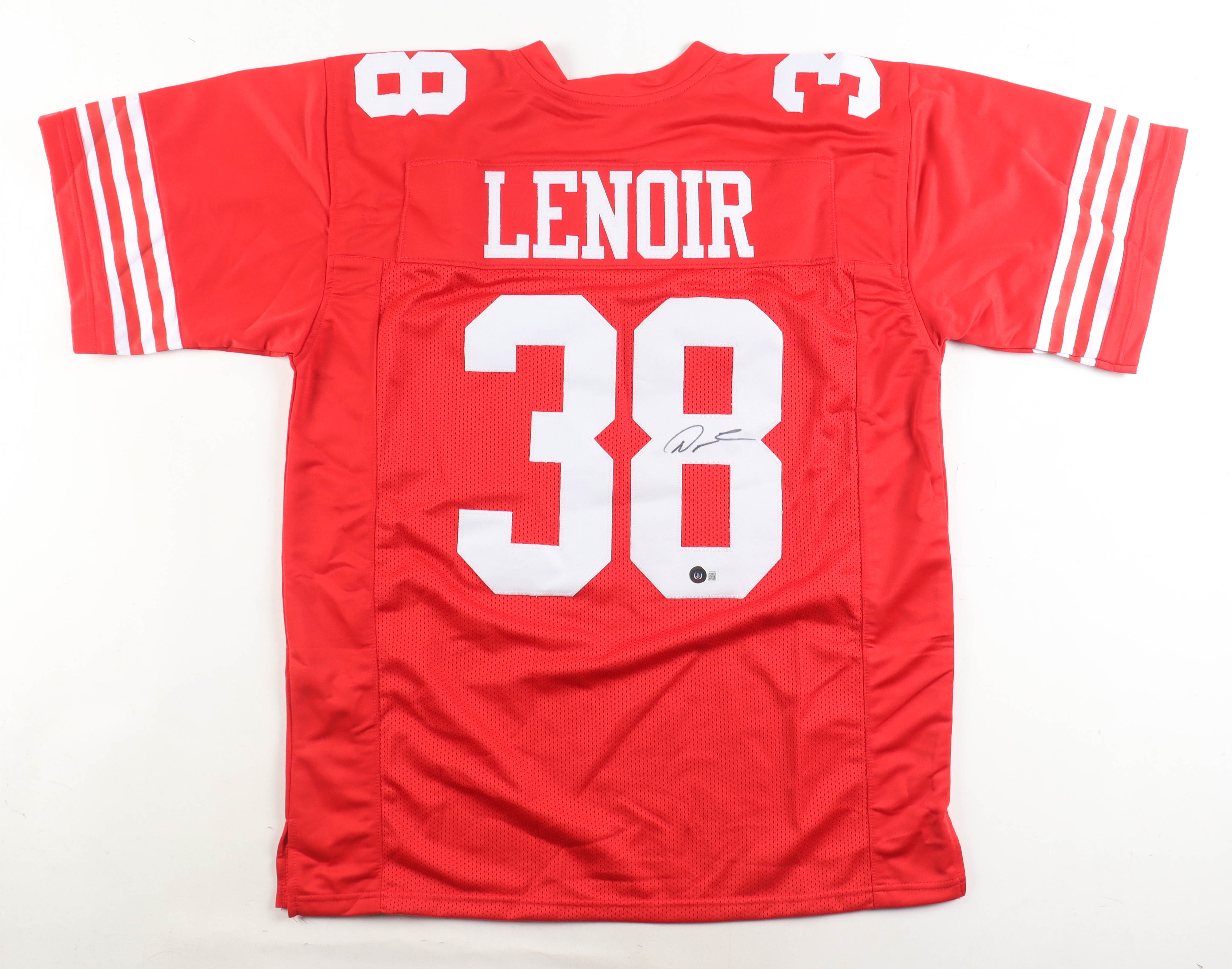 Custom jersey with everything sewn on, size XL. Hand-signed by Deommodore Lenoir.