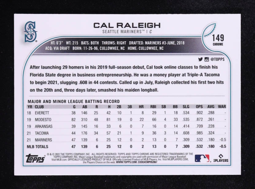 Cal Raleigh 2022 Topps Chrome #149 RC