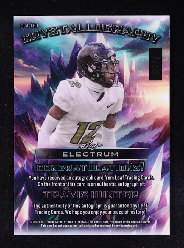 Travis Hunter 2024 Leaf Electrum Tie-Die Crystallography Autographs #CLATH1 #7/10 RC