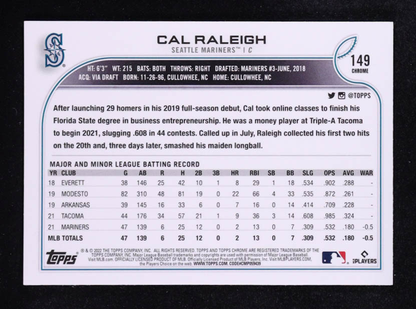 Cal Raleigh 2022 Topps Chrome #149 RC