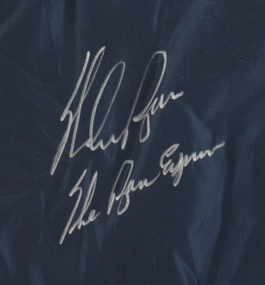 Nolan Ryan Signed Custom Framed Warm-Up Jacket Display Inscribed "The Ryan Express" with (2) Astros Pins (PSA)