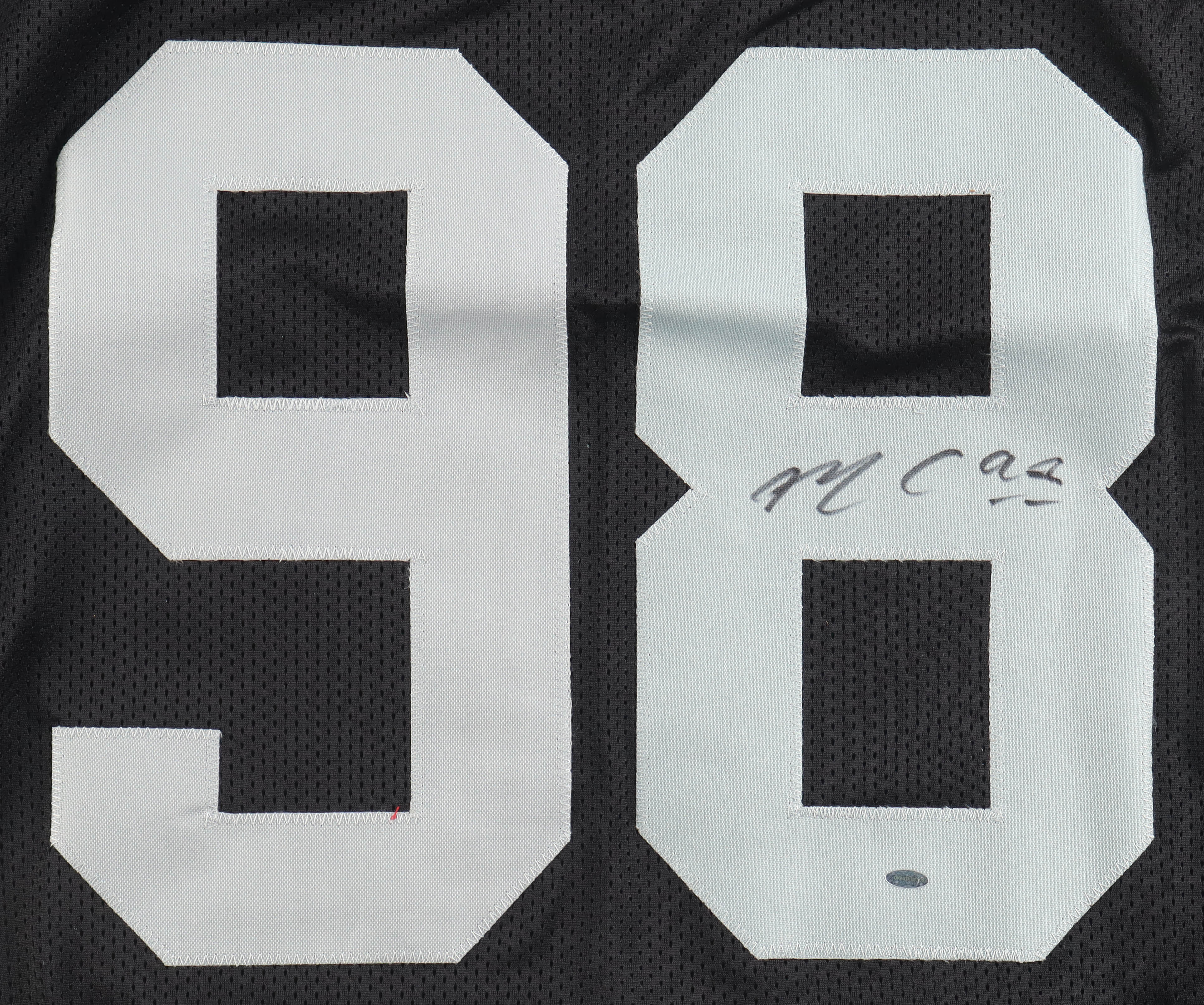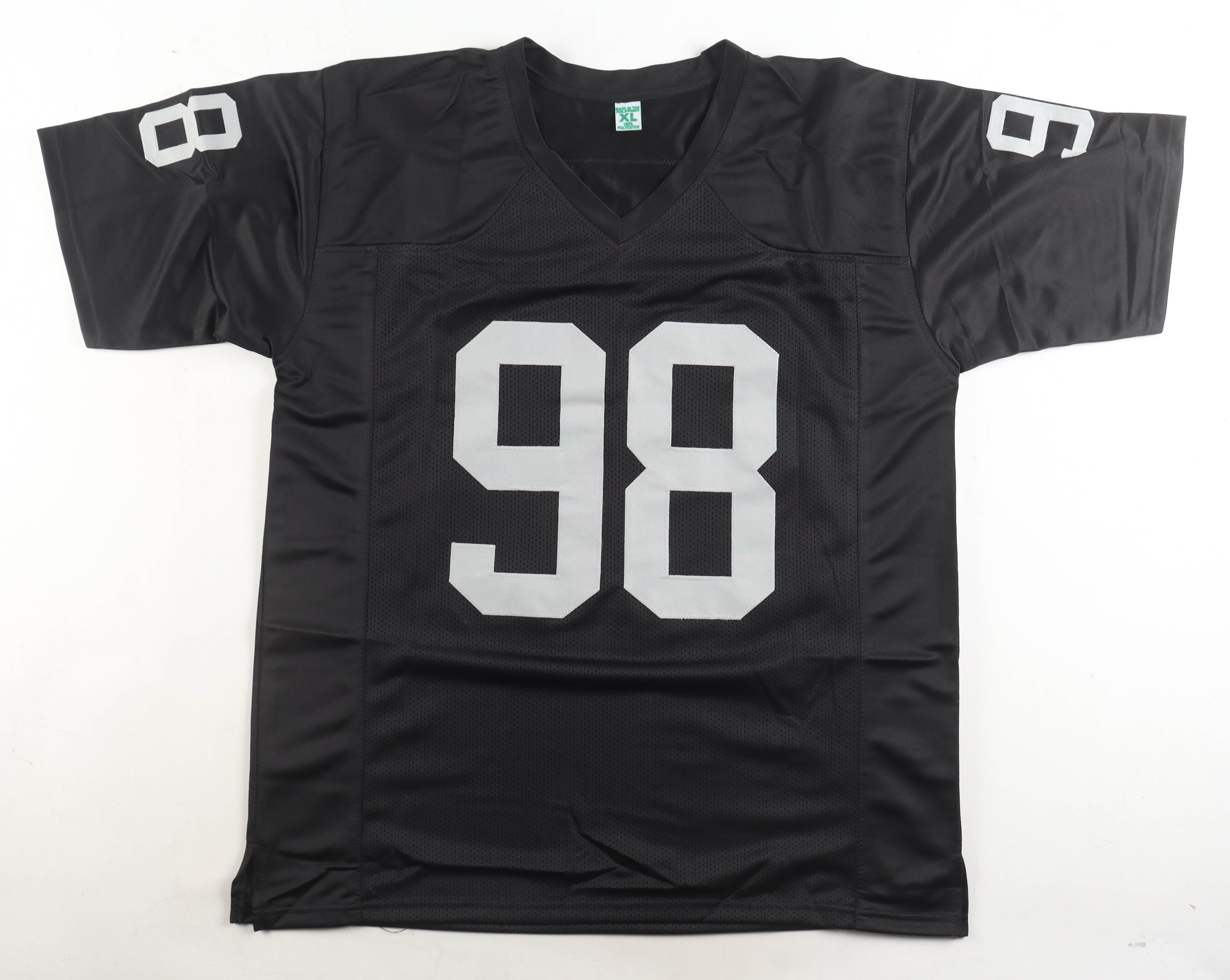 Custom jersey with everything sewn on, size XL. Hand-signed by Maxx Crosby.
