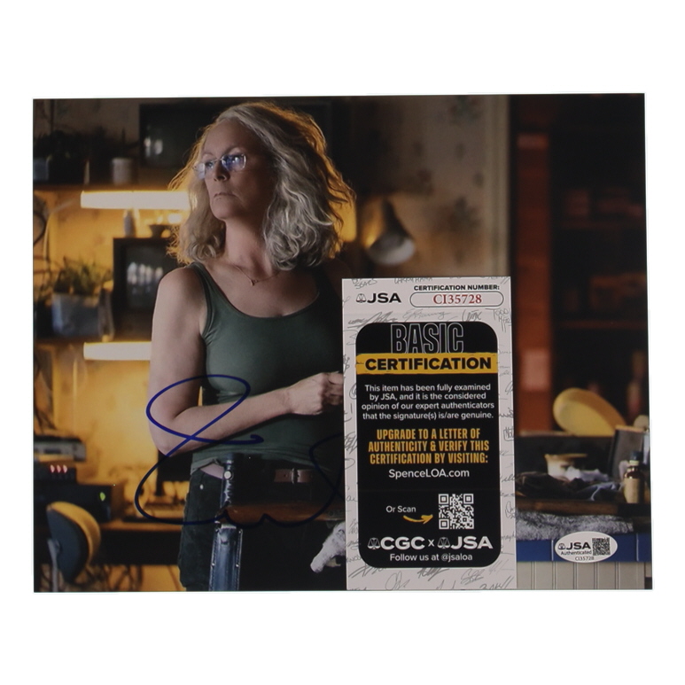 Photo measures 8" x 10" in size and has been hand-signed by Jamie Lee Curtis.