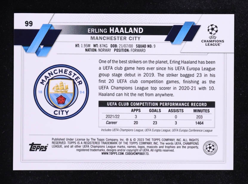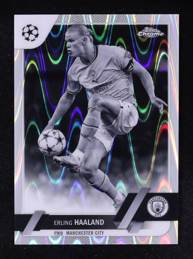 Erling Haaland 2022-23 Topps Chrome UEFA Club Competitions Black and White RayWave Refractors #99