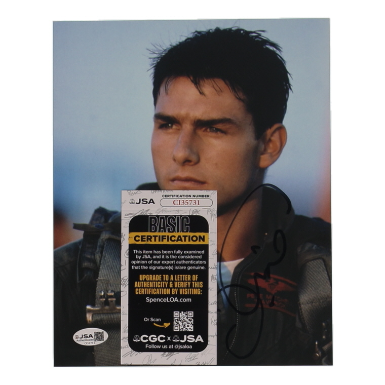 Photo measures approximately 8" x 10" in size and has been hand-signed by Tom Cruise.