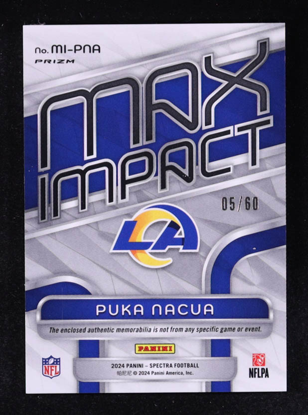 Puka Nacua 2024 Panini Spectra Max Impact Materials Neon Blue #13 #05/60