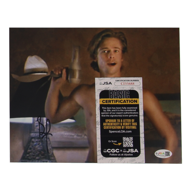 Photo measures 8" x 10" in size and has been hand-signed by Brad Pitt.