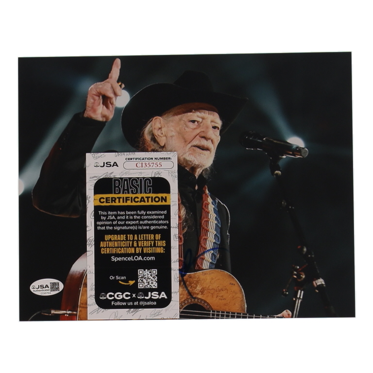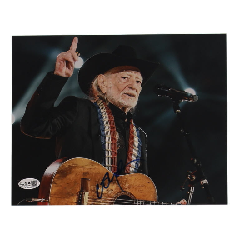 Photo measures 8" x 10" in size and has been hand-signed by Willie Nelson (HOF).