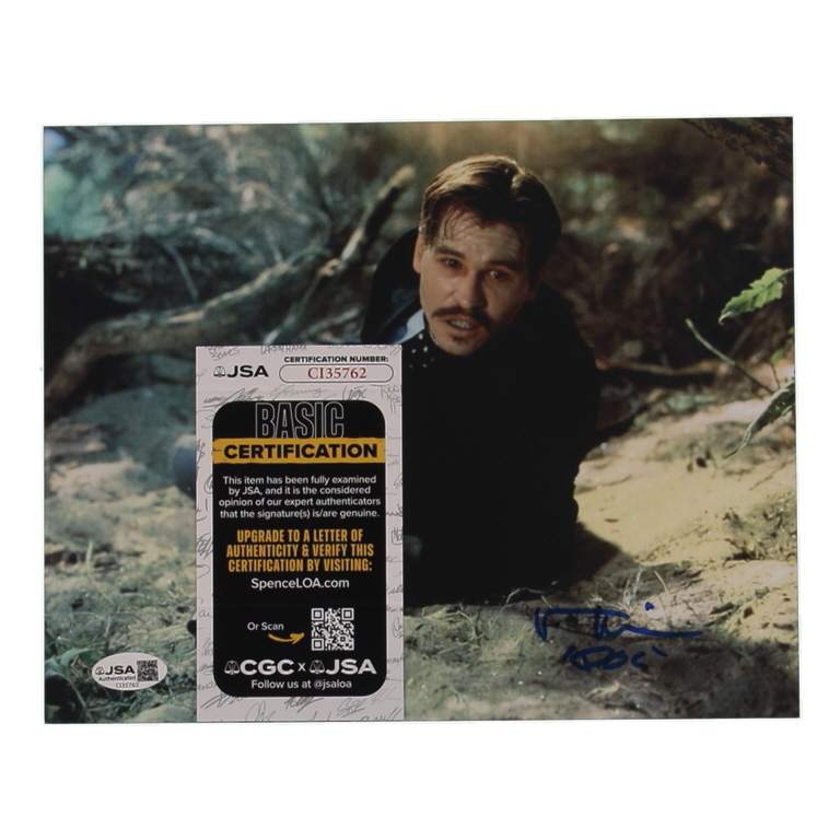 Photo measures 8" x 10" in size. Hand-signed and inscribed by Val Kilmer (D. 2025).