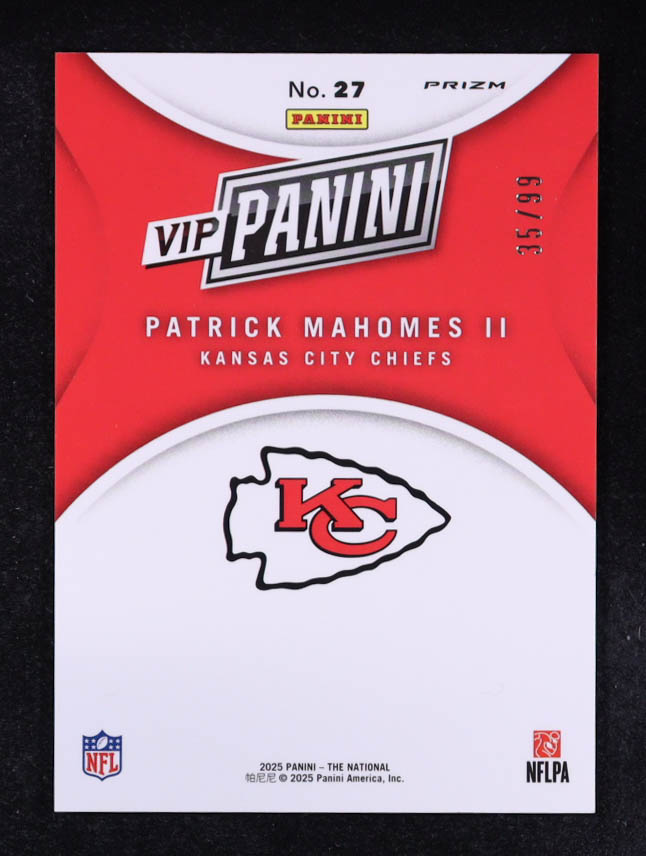 Patrick Mahomes II 2025 Panini National Convention VIP Gold Packs Red Sparkle #27 #35/99