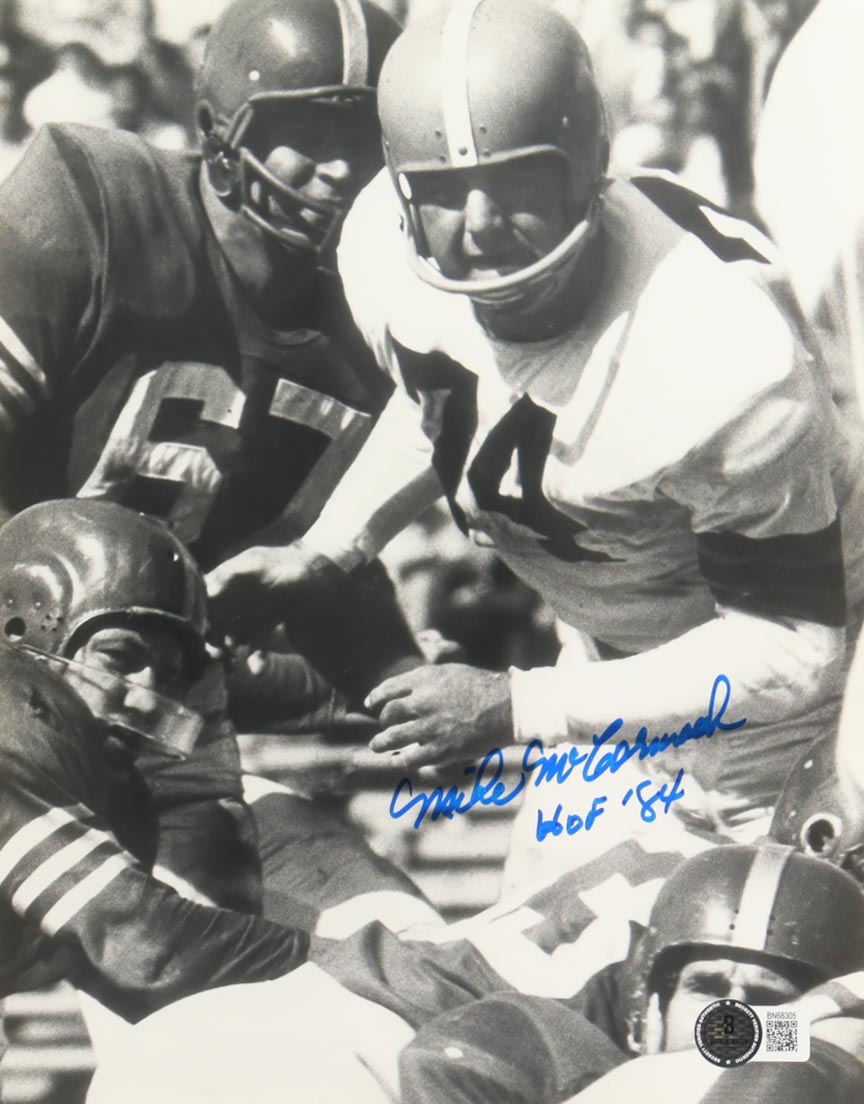 Photo measures 8" x 10" in size and has been hand-signed and inscribed by Mike McCormack (Cleveland Browns, HOF).