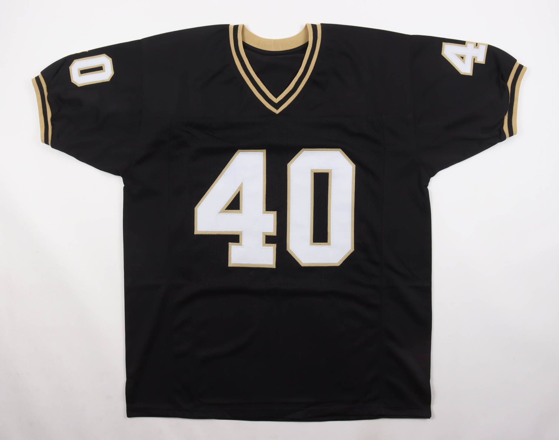 Custom jersey with everything sewn on, size XL. Hand-signed by Mike Alstott.