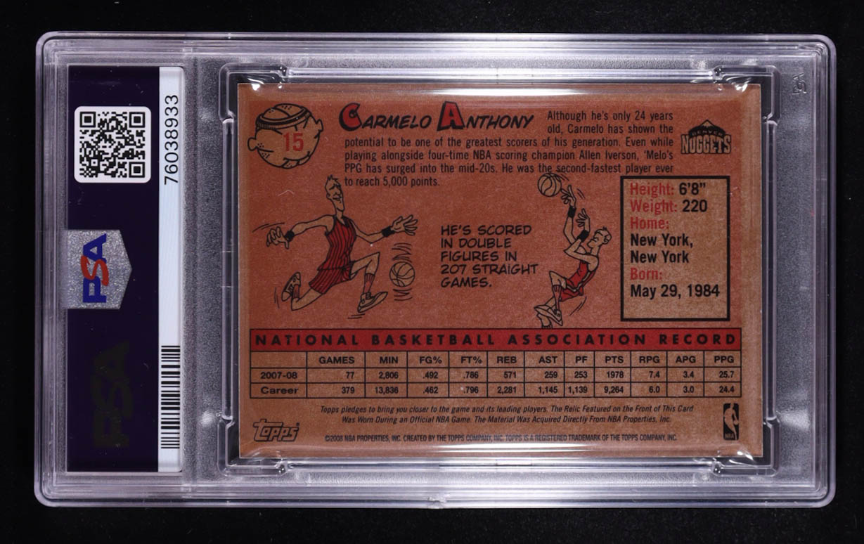 Carmelo Anthony 2008-09 Topps 1958-59 Variations Relics #15 (PSA 9)