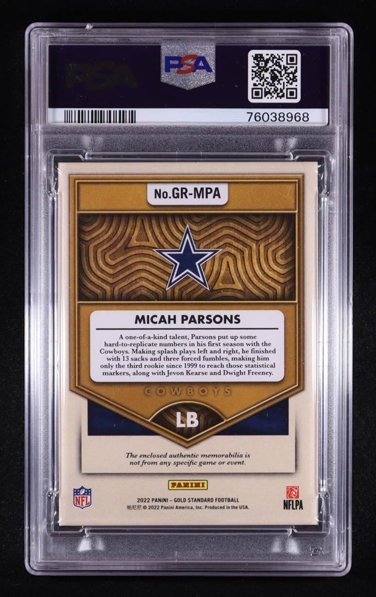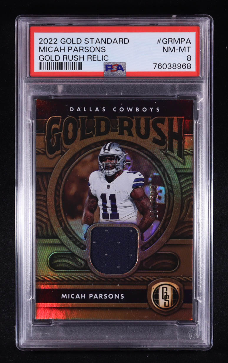 Micah Parsons 2022 Panini Gold Standard Gold Rush Materials #26 #184/299 (PSA 8)