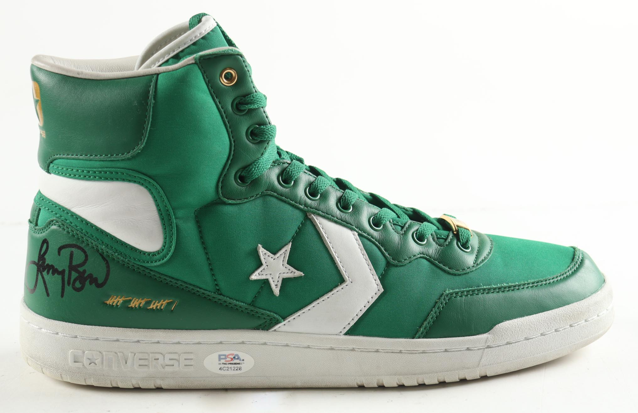 Converse basketball shoe has been hand-signed by Larry Bird (Boston Celtics, HOF). Includes dispaly case as shown.