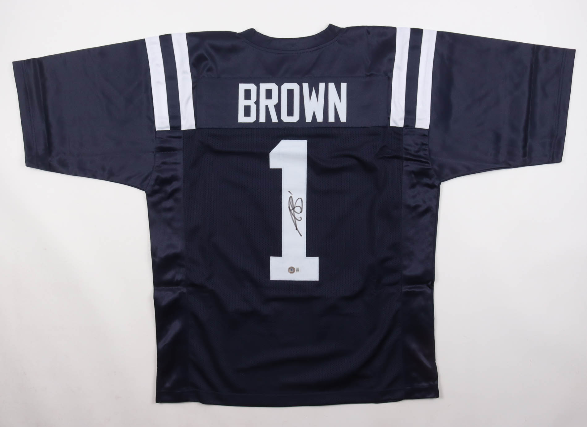 Custom jersey with everything sewn on, size XL. Hand-signed by A.J. Brown. Please note, glue is visible through the jersey numbers.