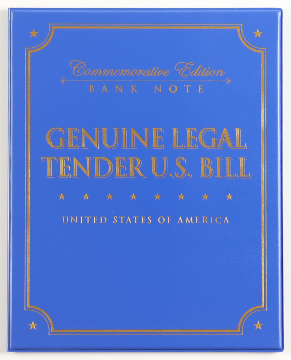 Donald Trump Genuine Legal Tender Colorized U.S. $2 Bill Commemorative Edition Bank Note. Includes folder as shown. Please note, the signature seen is a facsimile.