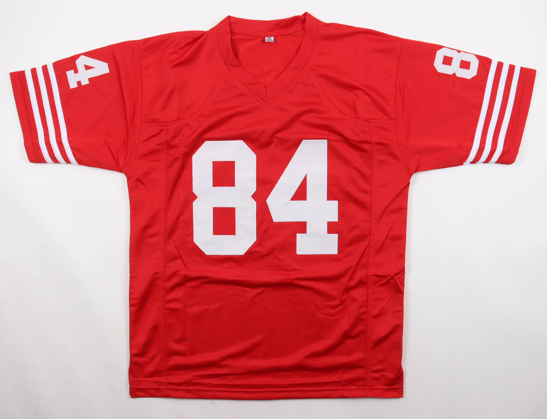 Custom jersey with everything sewn on, size XL. Hand-signed by Brent Jones.