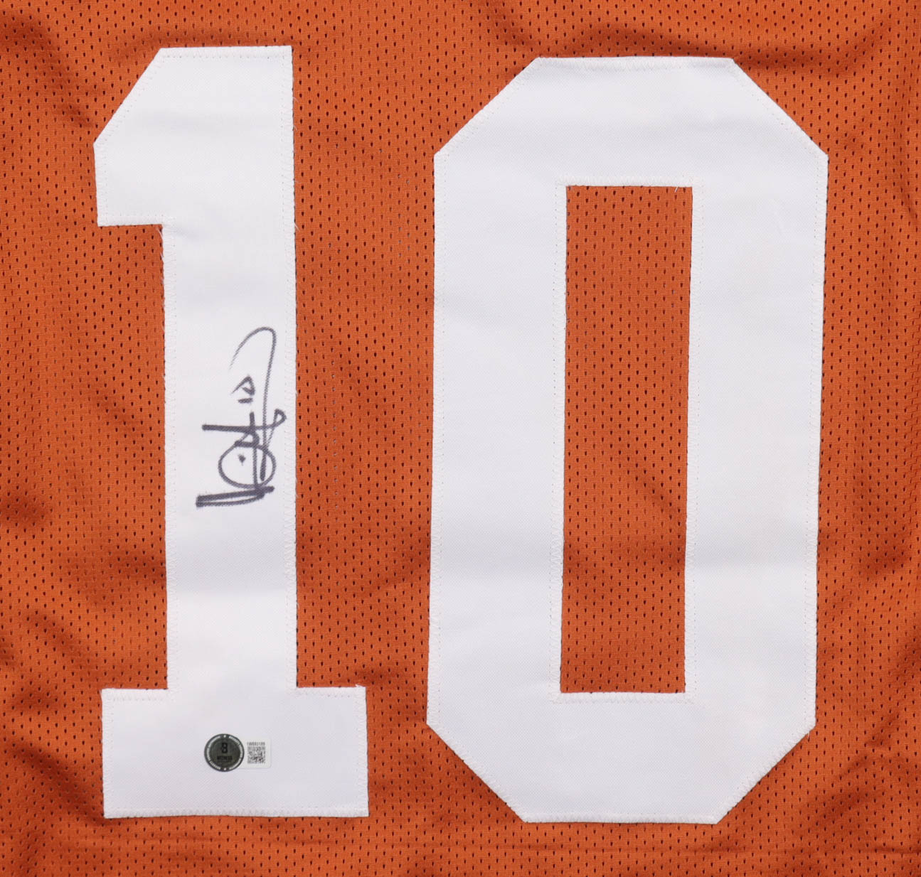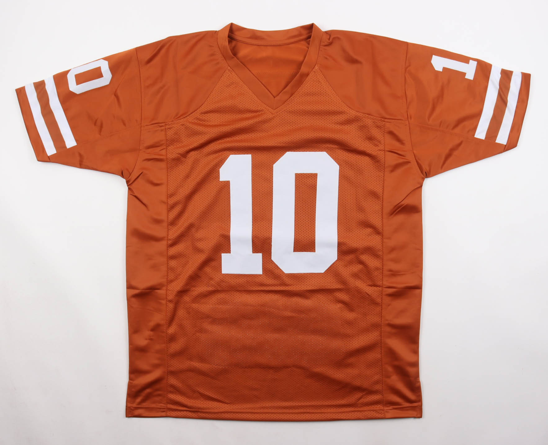 Custom jersey with everything sewn on, size XL. Hand-signed by Vince Young. Young's career highlights have been custom stitched onto the back of the jersey below the reverse numbers.