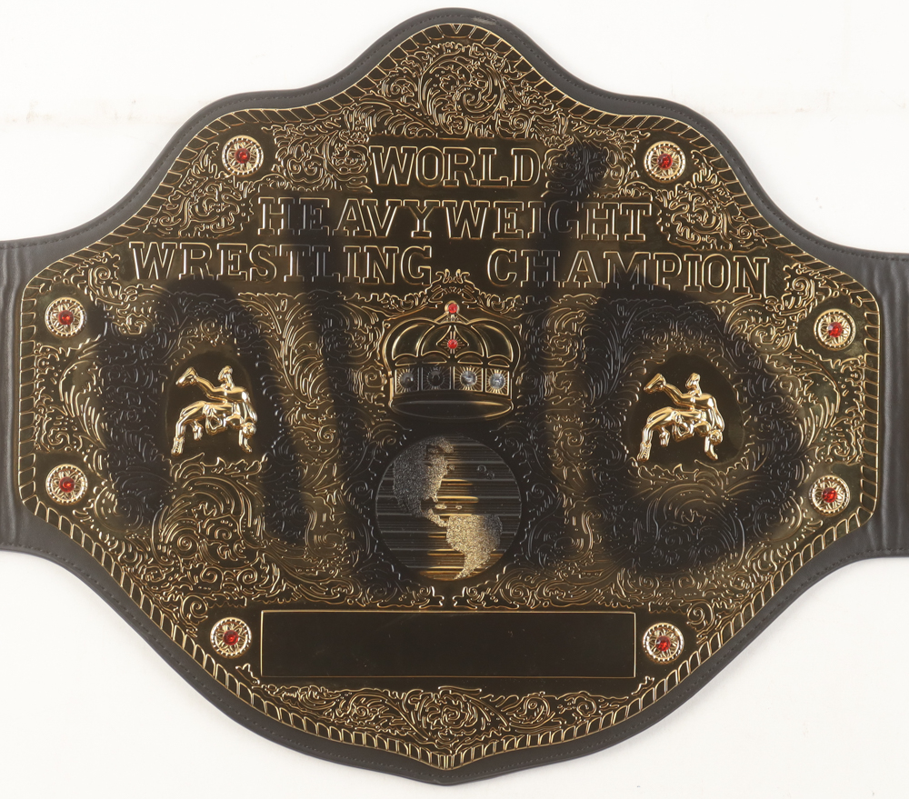 WWE Full-Size replica championship title belt measures 54" long and has been hand-signed on the strap by Hulk Hogan (HOF).