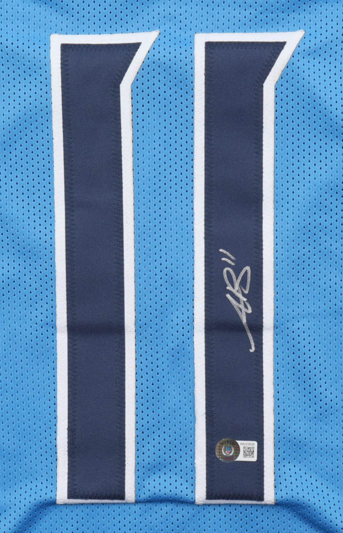 Custom jersey with everything sewn on, size XL. Hand-signed by A. J. Brown.