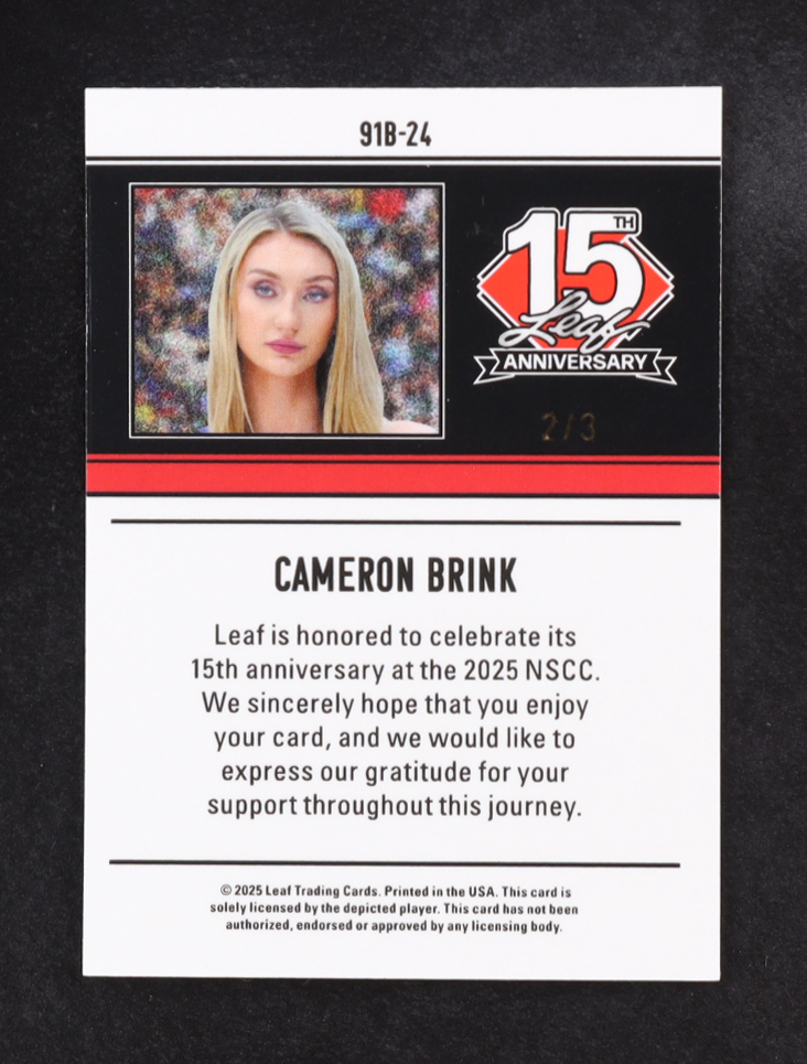 Cameron Brink 2025 Leaf 15th Anniversary Red Sparkle #91B-24 RC #2/3