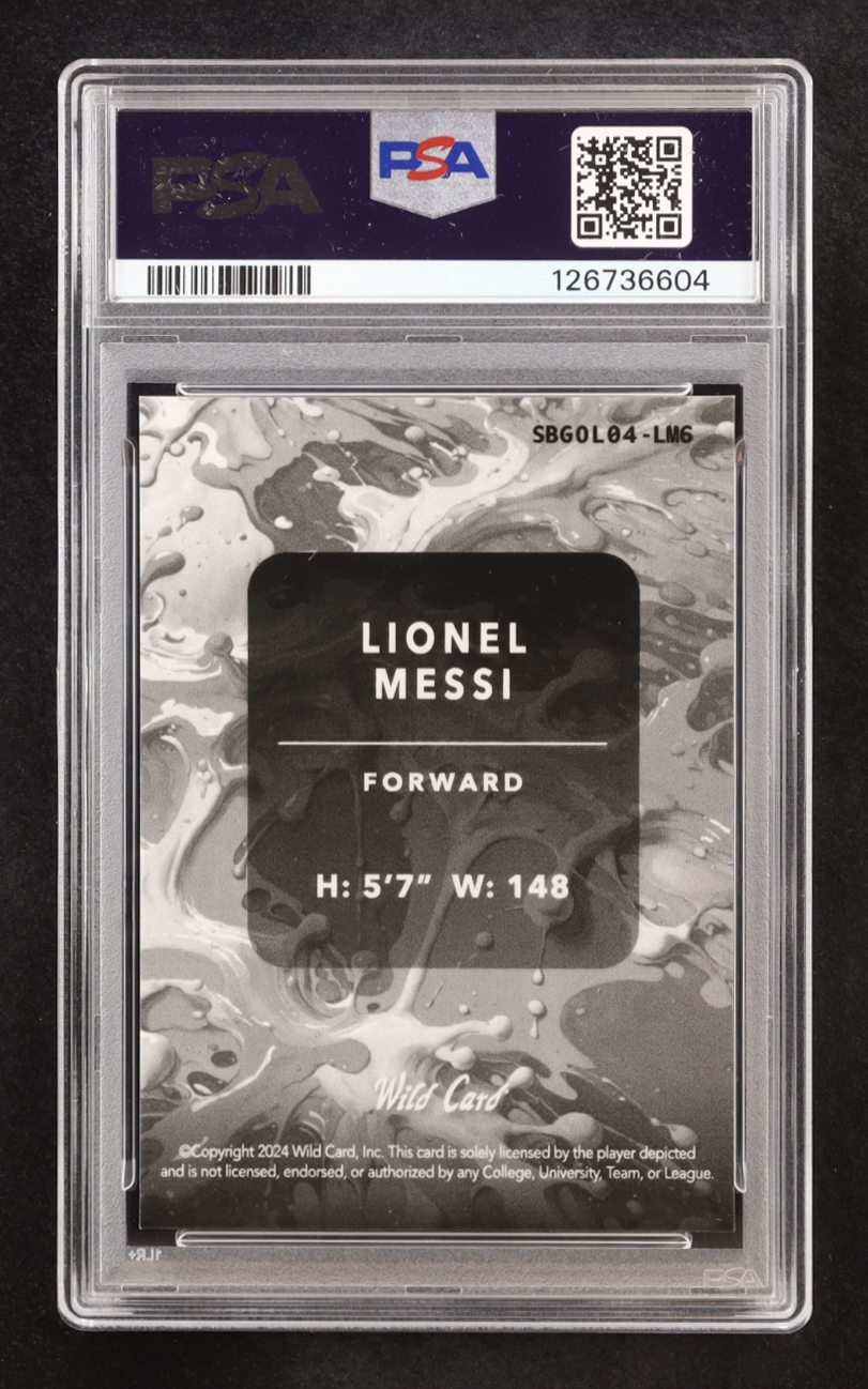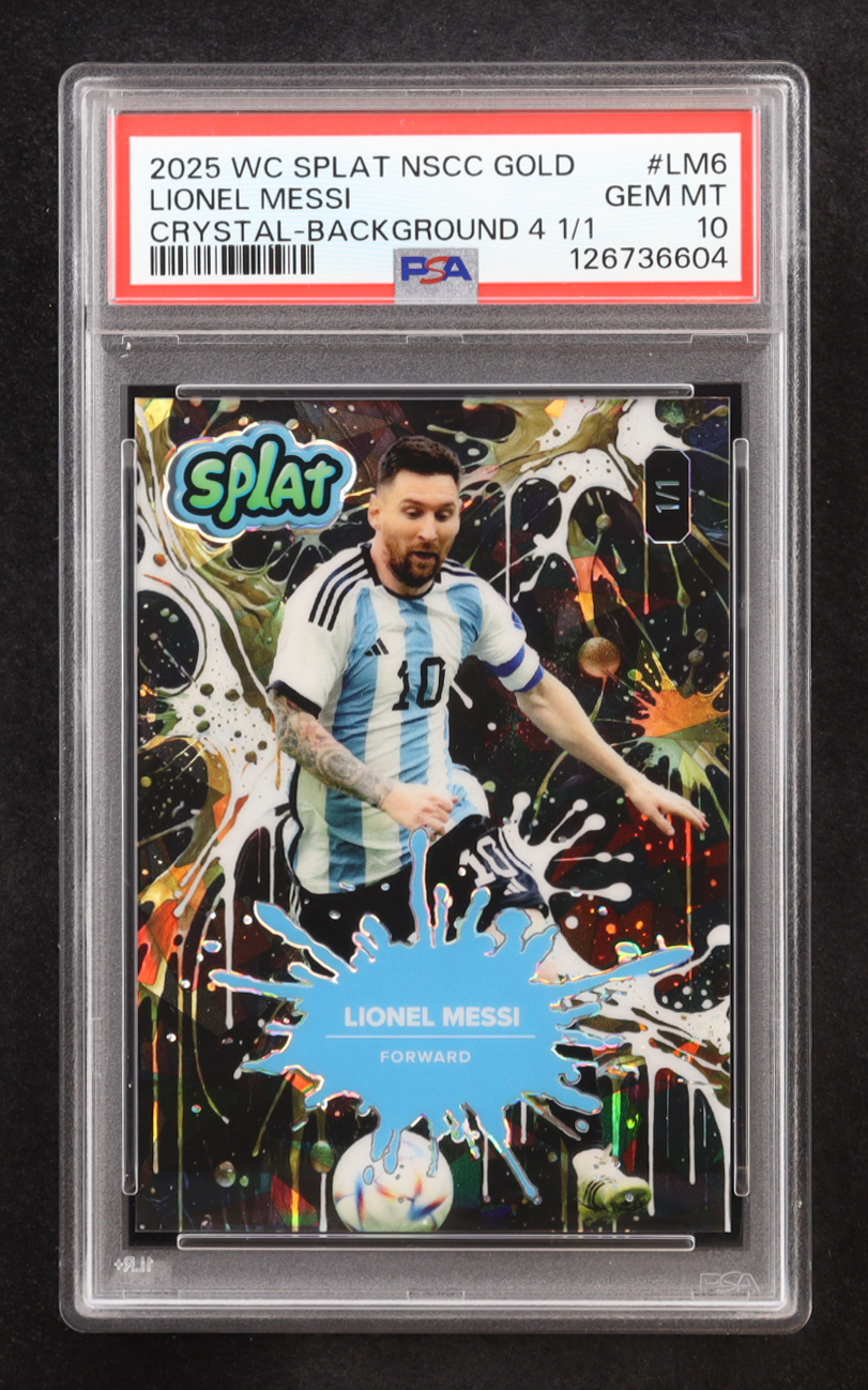 Lionel Messi 2025 Wild Card Splat NSCC Gold Crystal Background 4 #LM6 #1/1 (PSA 10)