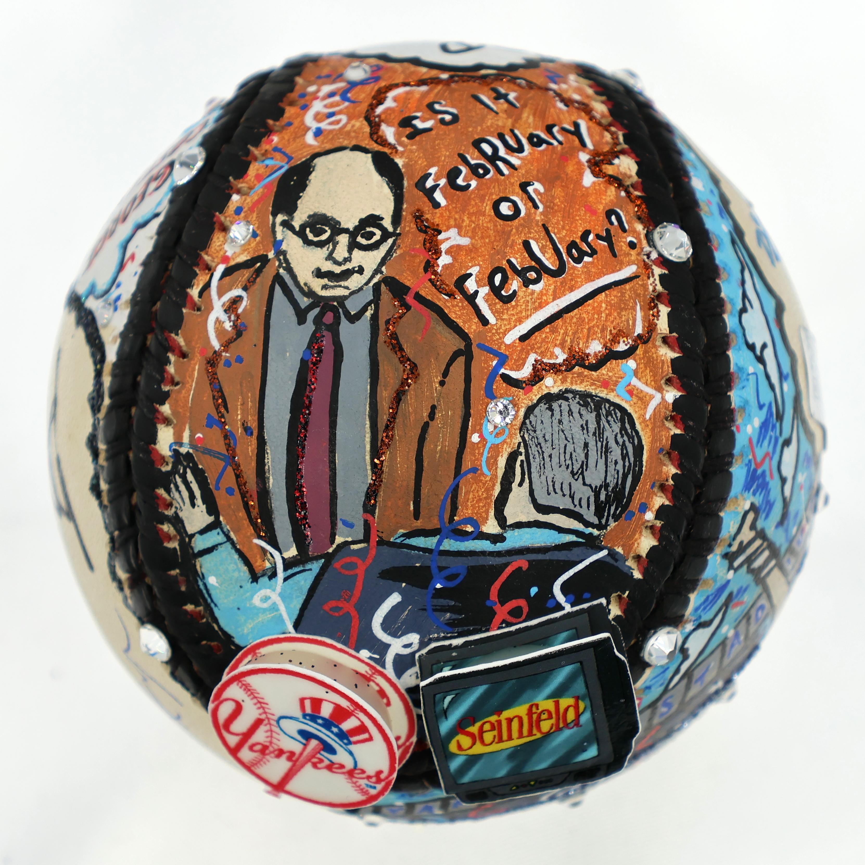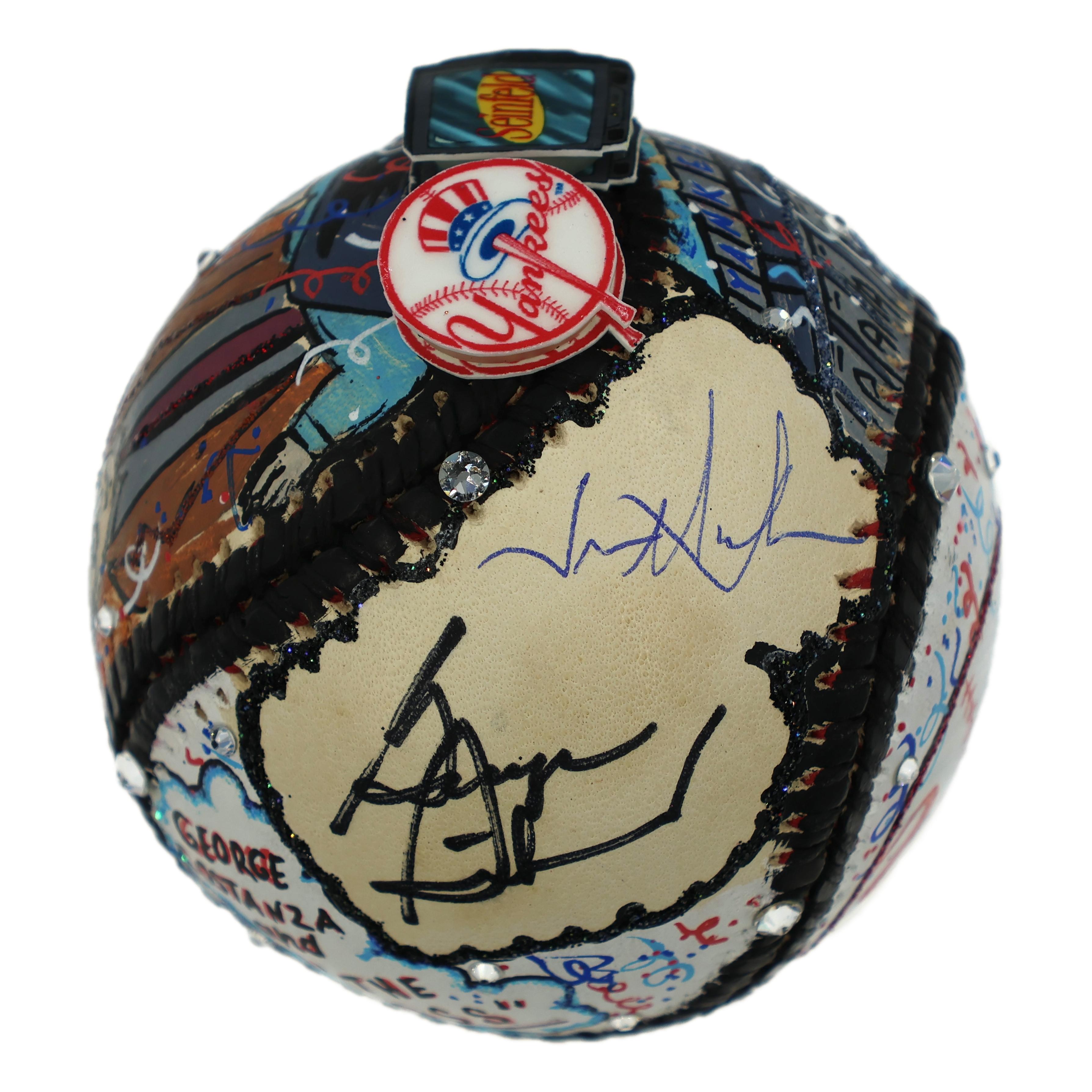 George Steinbrenner & Jason Alexander Signed Yankees/Seinfeld Baseball Hand-Painted by Renowned Pop Artist Charles Fazzino (Fanatics & JSA)
