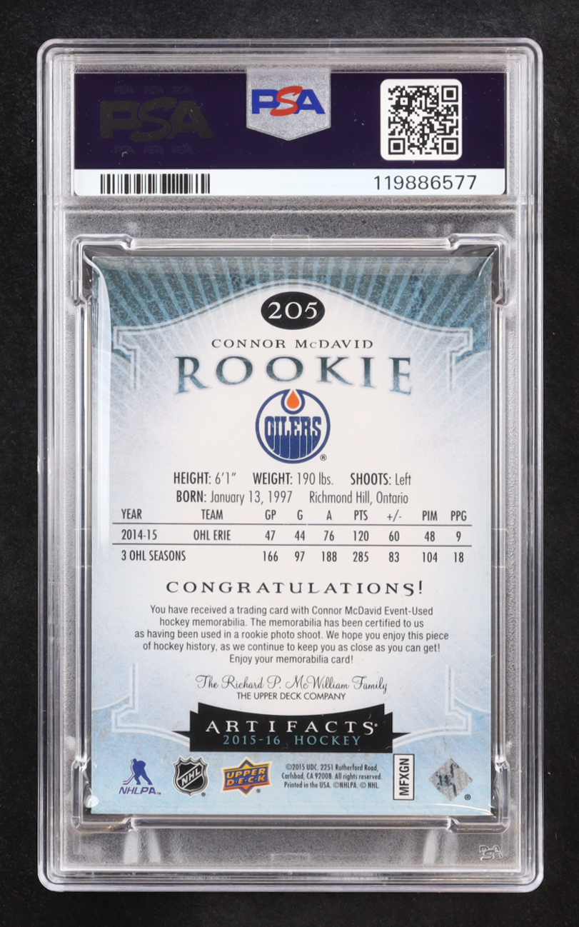 Connor McDavid 2015-16 Artifacts Jerseys #205 #294/399 RC (PSA 9)