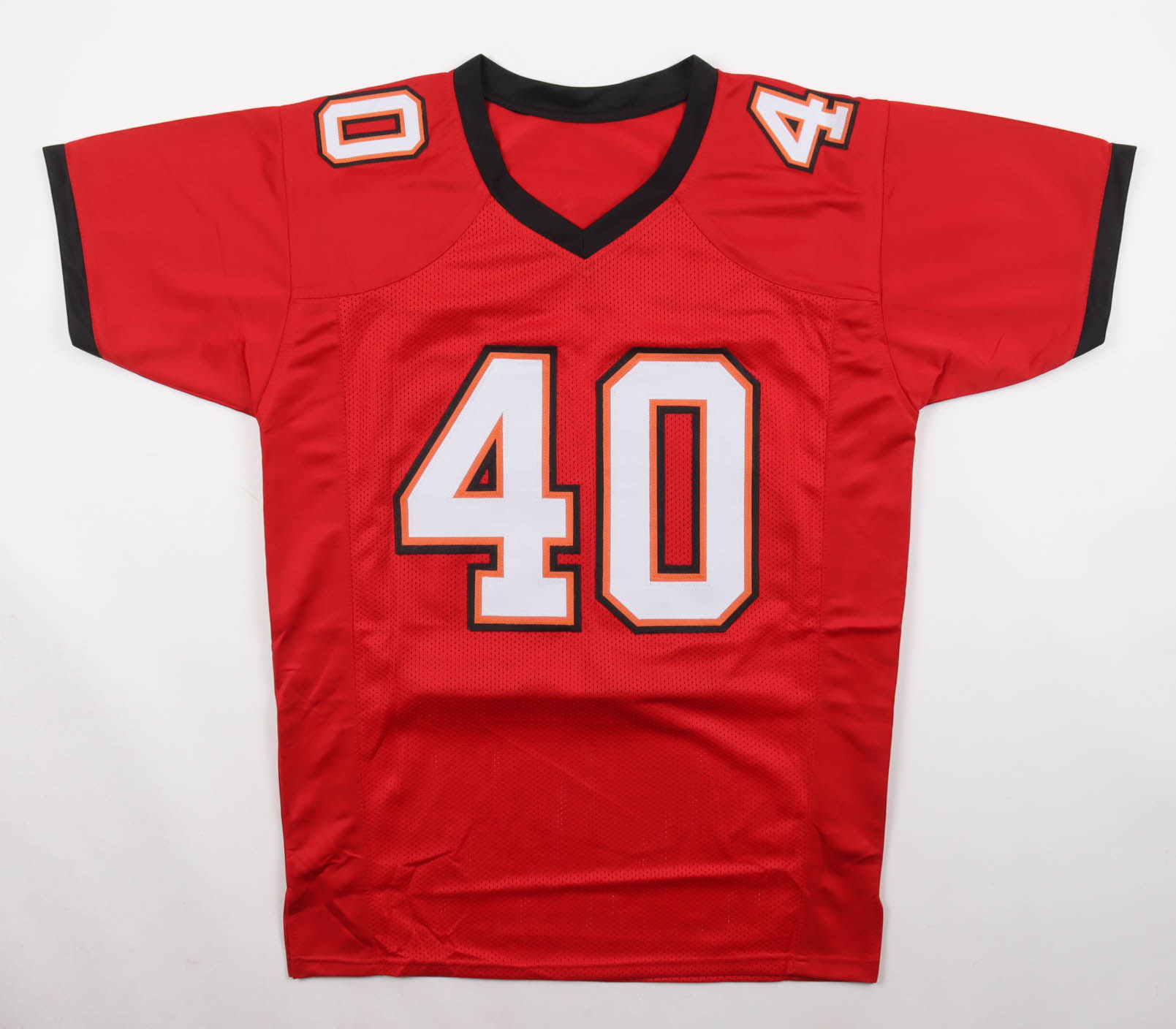 Custom jersey with everything sewn on, size XL. Hand-signed by Mike Alstott.