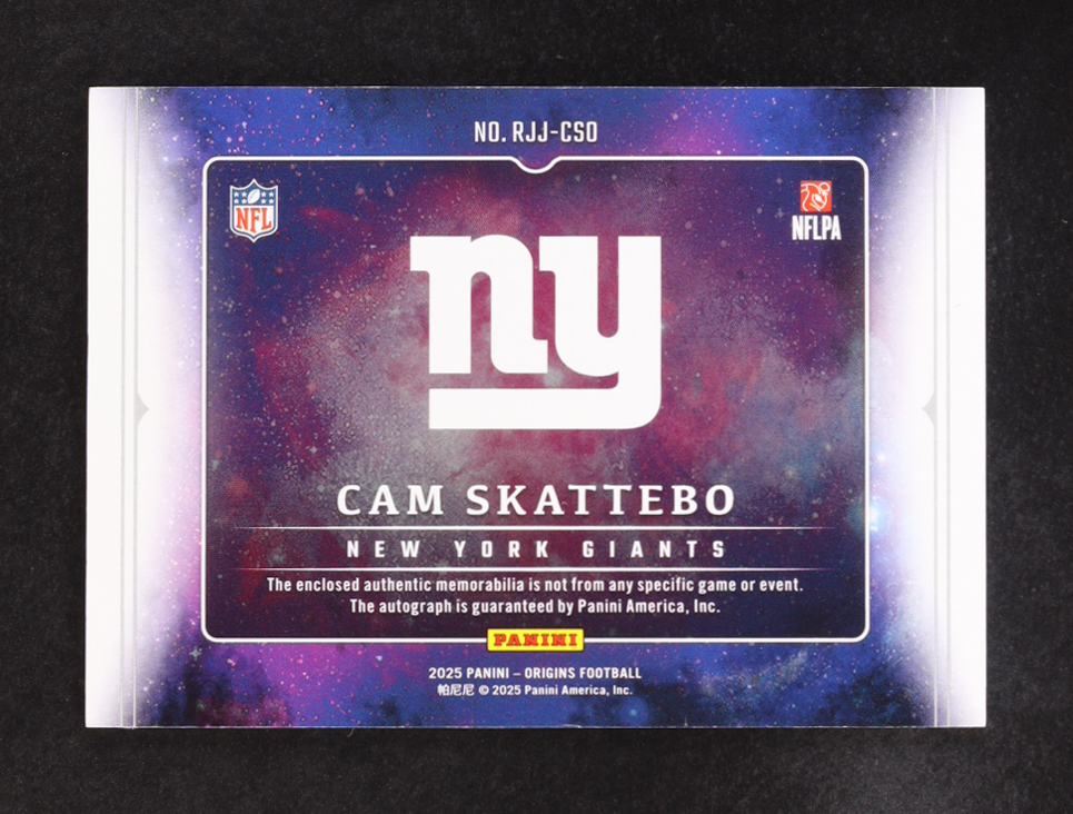 Cam Skattebo 2025 Panini Origins Rookie Patch Auto #RJJ-CS0 RC