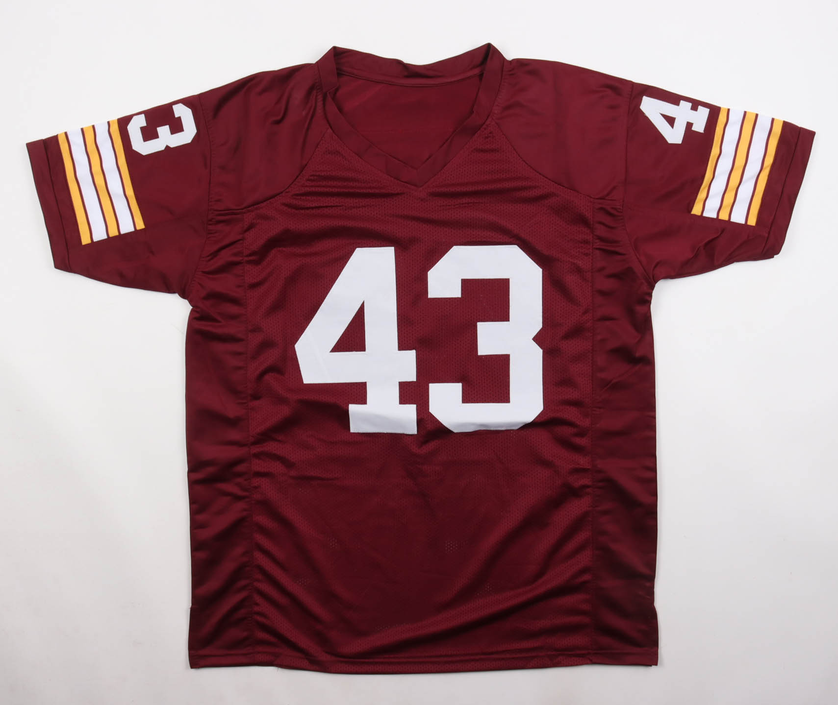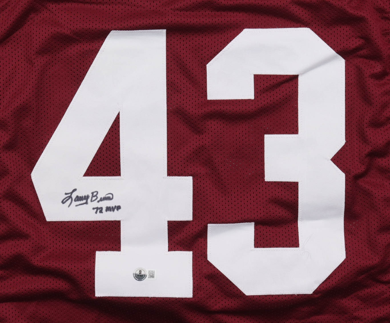 Custom jersey with everything sewn on, size XL. Hand-signed and inscribed by Larry Brown. Please note, the signature and inscription have bled.
