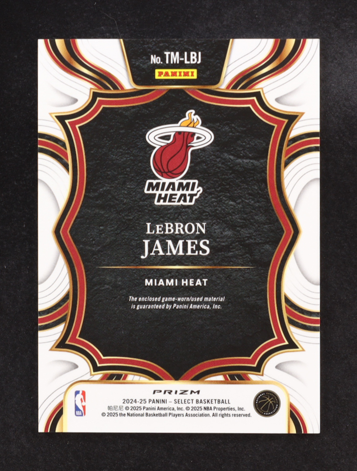 Lebron James 2024-25 Panini Select Prizm Game-Used MEM #TM-LBJ