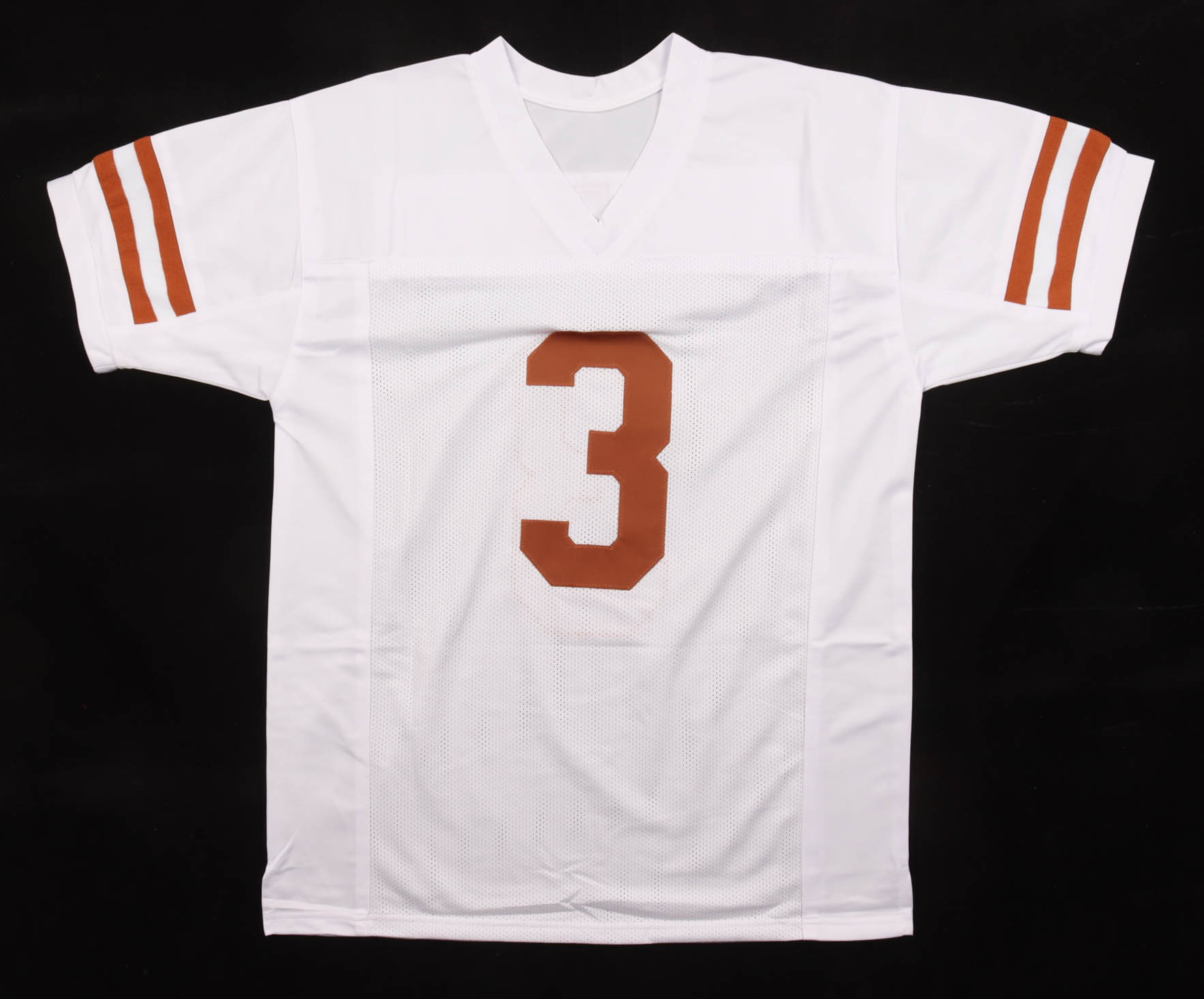 Custom jersey with everything sewn on, size XL. Hand-signed by Quinn Ewers.