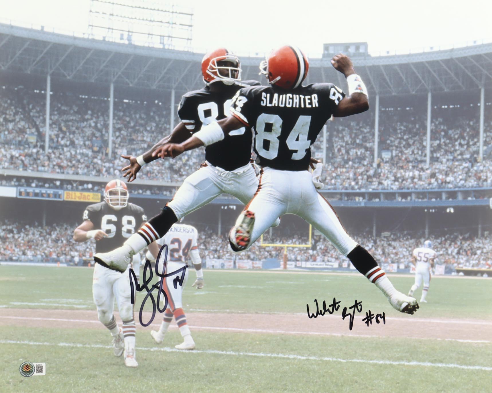 Photo measures 16" x 20" in size. Hand-signed by Webster Slaughter (Cleveland Browns) and Reggie Langhorne (Cleveland Browns).