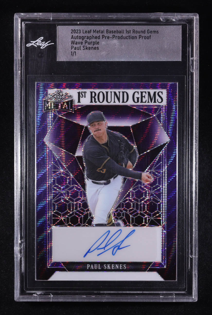Paul Skenes 2023 Leaf Metal Baseball 1st Round Gems Autographed Pre-Production Proof Wave Purple #NN #1/1 RC (Leaf)
