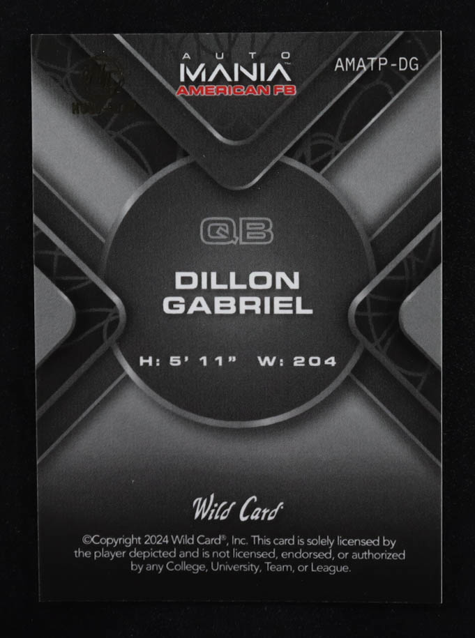Dillon Gabriel 2024 Wild Card AutoMania American FB Holo-Lux #AMATP-DG RC #1/1