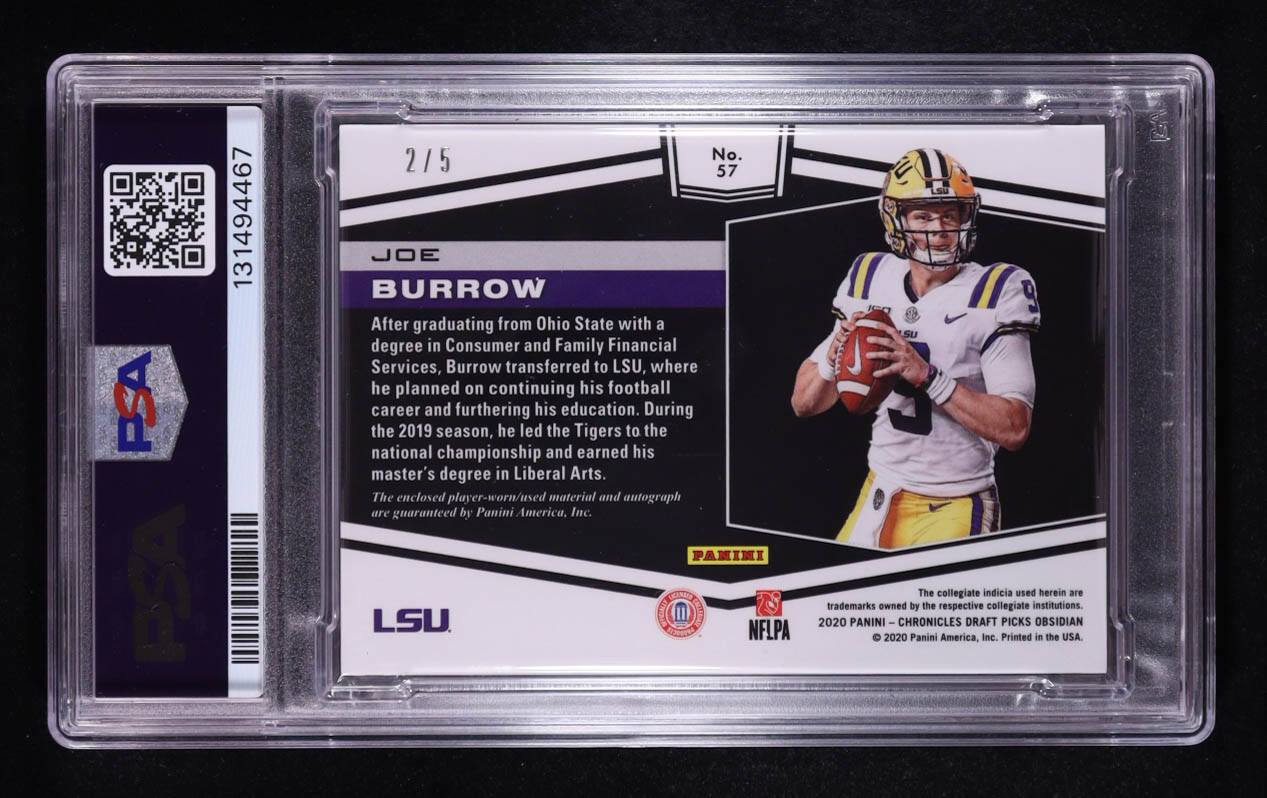 Joe Burrow 2020 Panini Obsidian Draft Picks Jersey Autographs Electric Etch Yellow #57 RC #2/5 (PSA 9 | Auto 10)