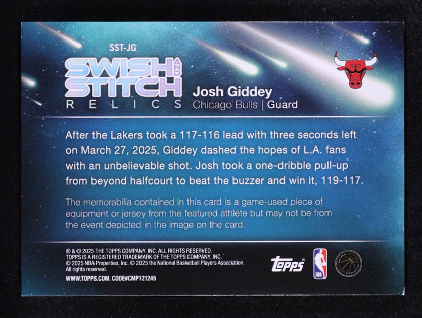 Josh Giddey 2025-26 Topps Swish and Stitch Relics Black Holo Foil #SSTJG #10/10