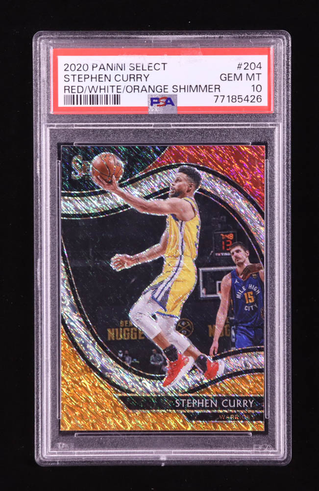 Stephen Curry 2020-21 Select Prizms Red White Orange Shimmer #204 (PSA 10)