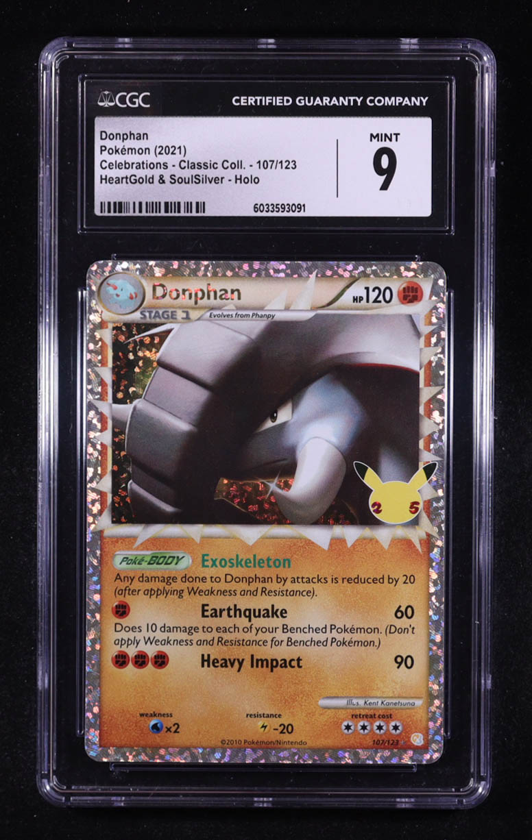 Donphan Pokemon 2021 Celebrations Classic Collection HeartGold & SoulSilver Confetti Holofoil #107 (CGC 9)