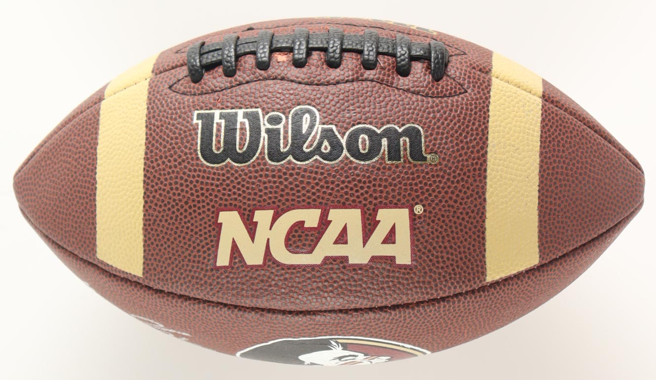 Wilson NCAA Florida State Seminoles logo football has been hand-signed by Kevin Benjamin. Please note, the ball is scuffed throughout.