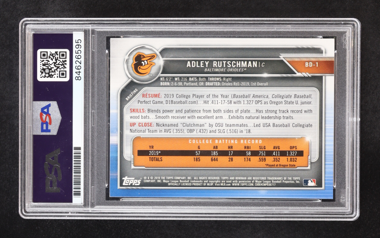 Adley Rutschman Signed 2019 Bowman Draft #BD1 RC (PSA)