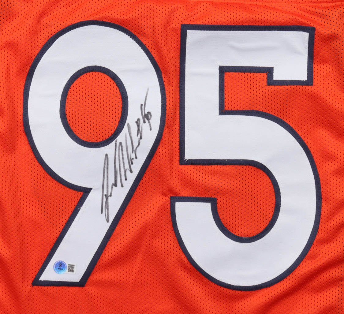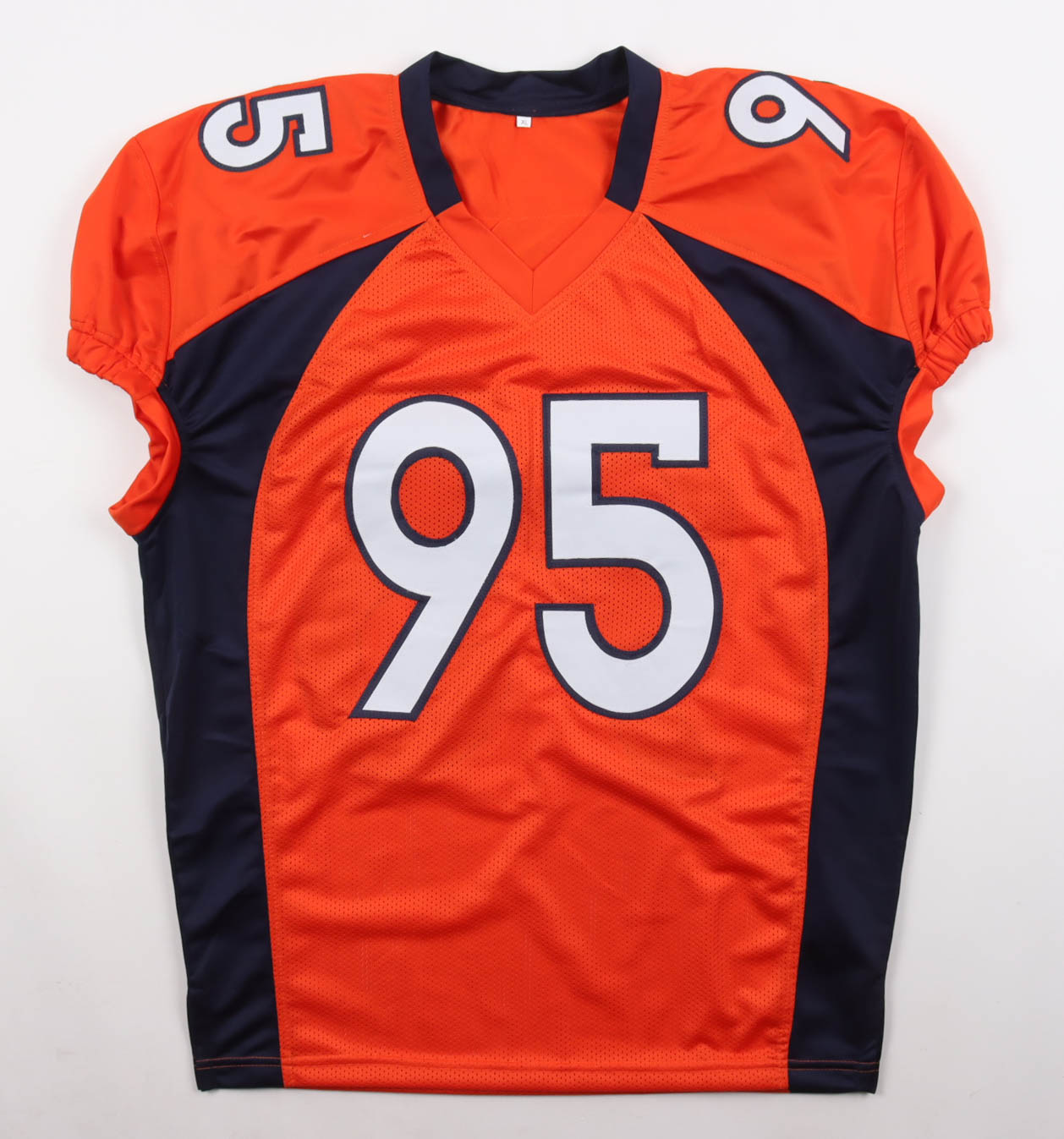 Custom jersey with everything sewn on, size XL. Hand-signed by Derek Wolfe (Denver Broncos).