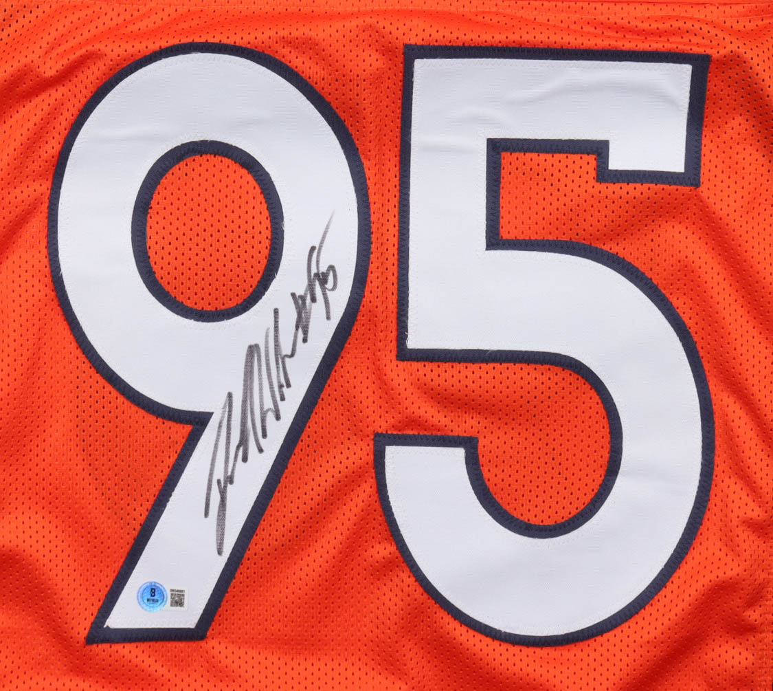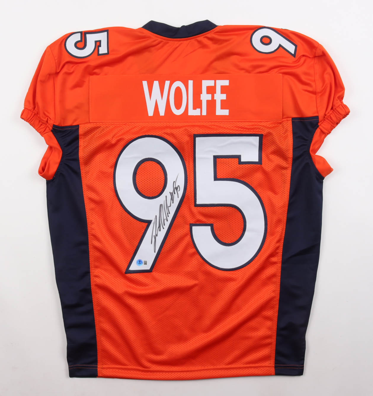 Custom jersey with everything sewn on, size XL. Hand-signed by Derek Wolfe.