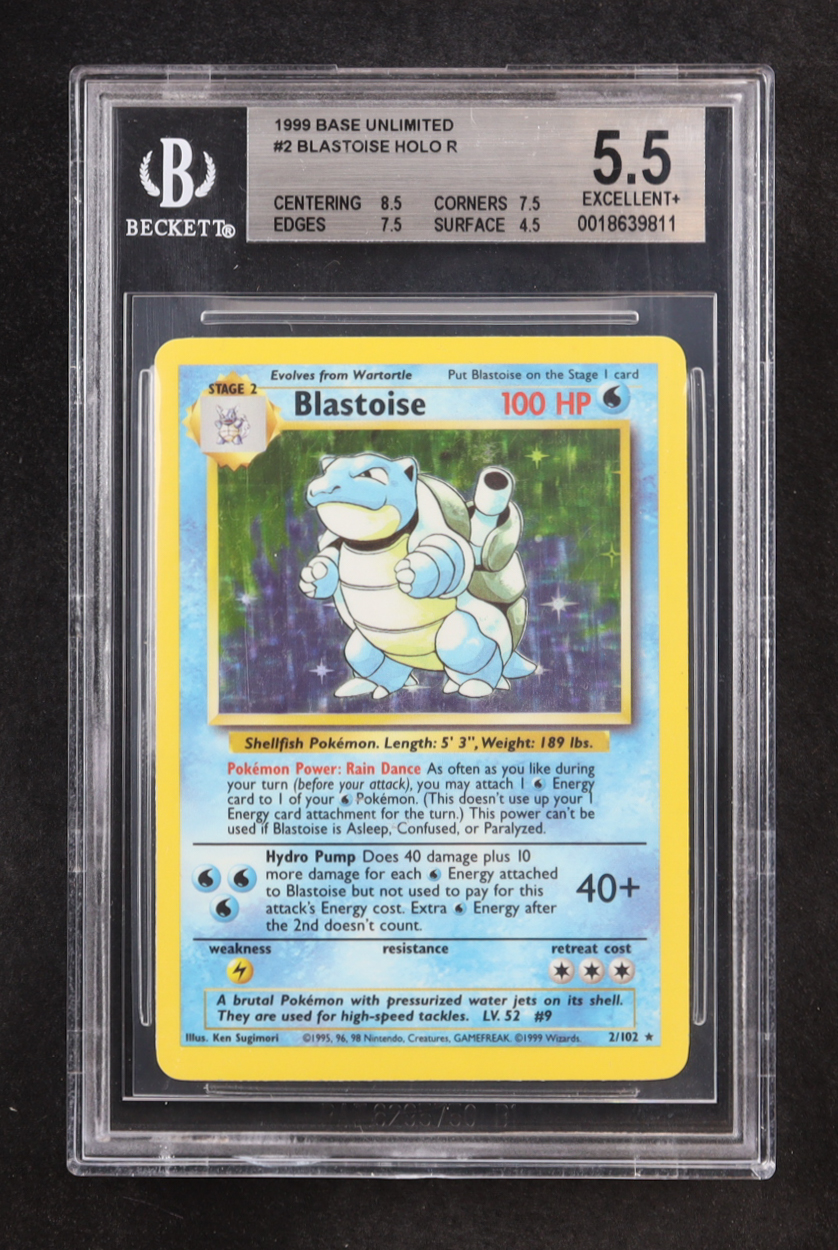 Blastoise HOLO R 1999 Pokemon Base Unlimited #2 (BGS 5.5)