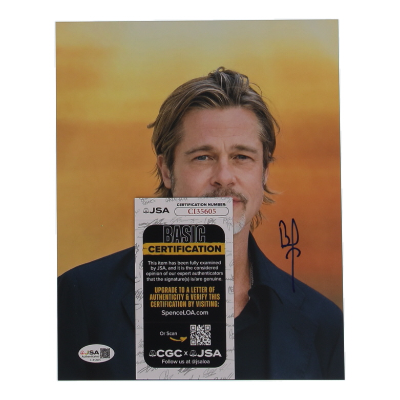 Photo measures 8" x 10" in size and has been hand-signed by Brad Pitt.